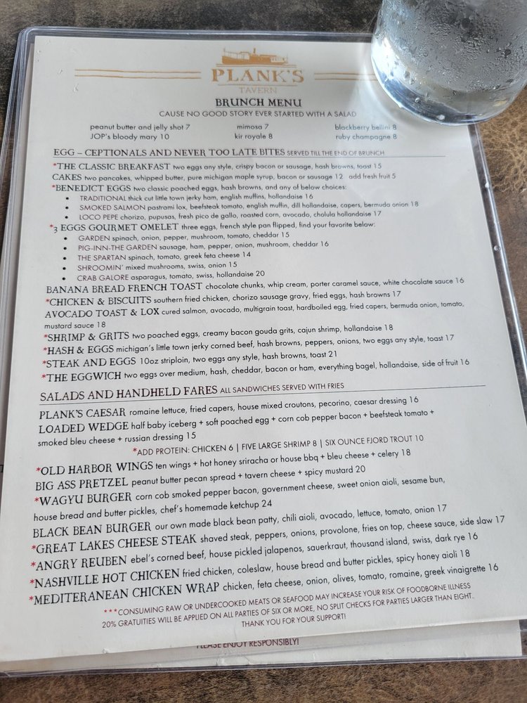 Welcome to Plank's Tavern on the Water, a delightful gem in St. Joseph, MI, where New American cuisine meets a vibrant bar scene. This tavern offers a robust menu perfect for any occasion, whether you're indulging in a hearty breakfast, enjoying a leisurely brunch, or unwinding over dinner.